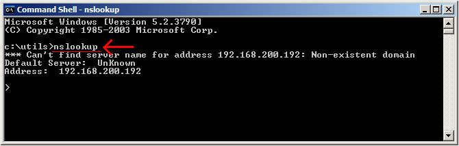 هنگام اجرا، NSLookup سروری را که به عنوان DNS Server کامپیوتر شما تعریف شده است را به عنوان سرور پیش فرض تعیین میکند. این آدرس را میتوانید در تنظیمات شبکه خود در بخش TCP/IP مشاهده کنید. برای مثال در شکل بالا سروری که پرسشهای ما را جواب میدهد، دارای آدرس 192.168.200.192 است که یک Name Server در شبکه داخلی می باشد.
