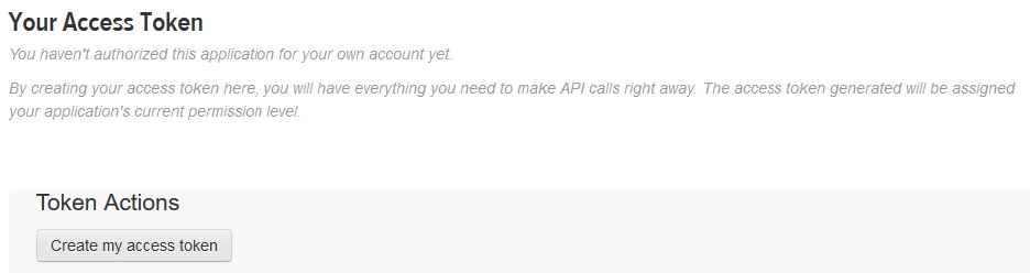 پس از ایجاد Application اطلاعات مربوط به آن را مشاهده خواهید نمود و با توجه به درخواست خود می توانید Token و سطوح دسترسی مورد نیاز خود را ایجاد نمایید: